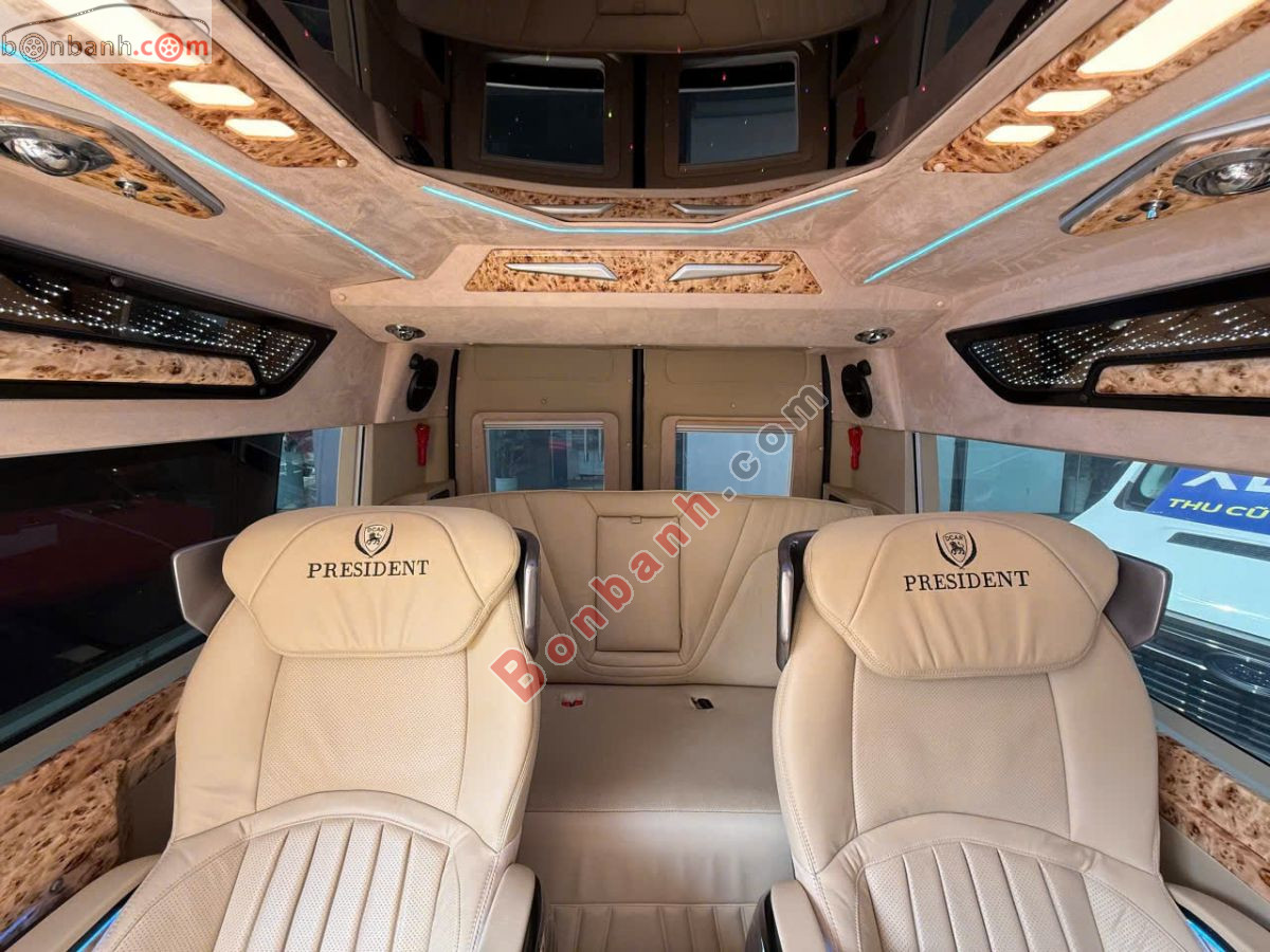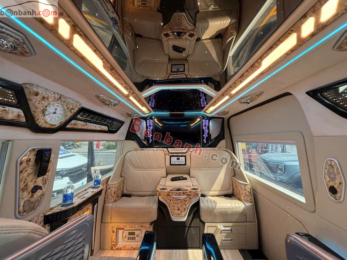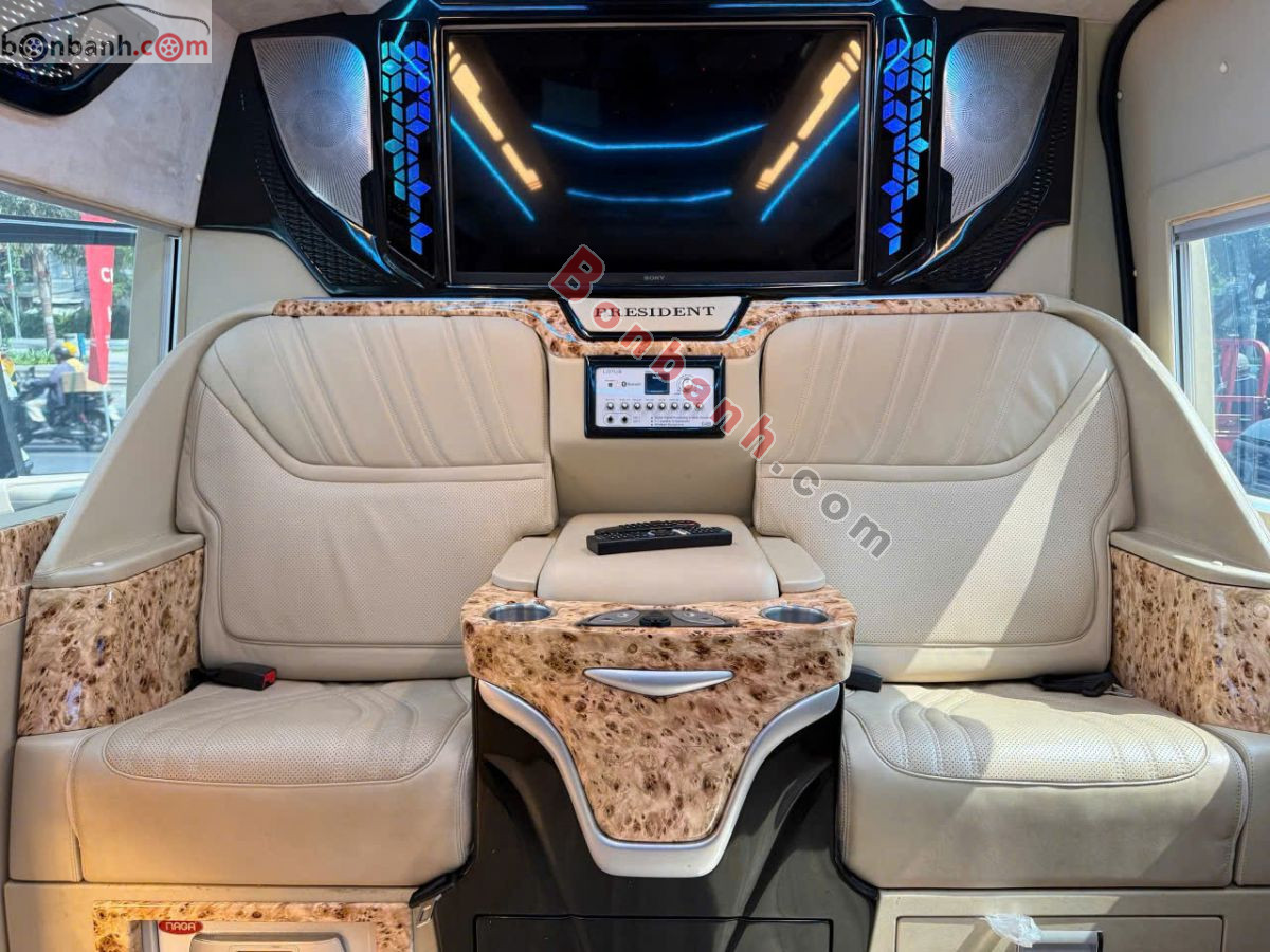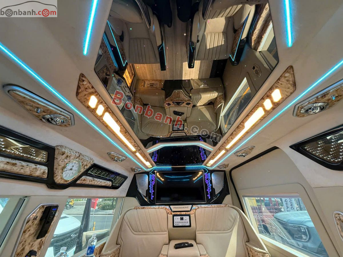 Trang bị: ghế da chỉnh điện, massage, hệ thống giải trí màn hình lớn, quầy bar mini, tủ lạnh, đèn đọc sách, cổng sạc USB/220V, rèm điện, và hệ thống khử mùi, tạo không gian sang trọng, tiện nghi như khoang máy bay hoặc hạng thương gia, phù hợp cho đưa đón VIP, công tác và du lịch gia đình...